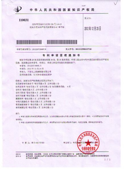 专利设备申请受理通知书